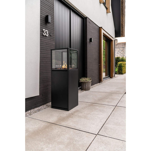 Cosiscoop Pillar Black or Teak Tall Gas Fire Outdoor Lantern